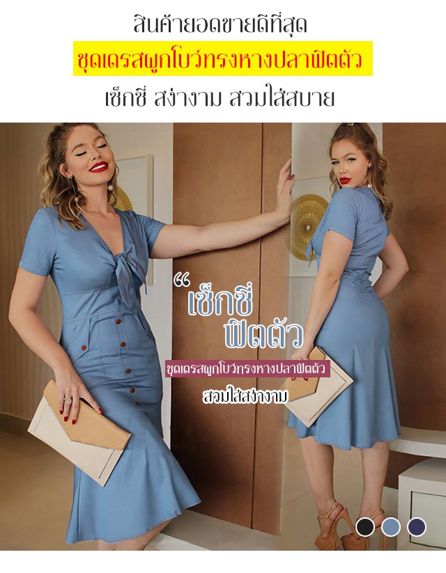 [สไตล์เดียวกันในห้าง] ชุดเดรสผูกโบว์ทรงหางปลาฟิตตัว แฟชั่น สง่างาม ดูดซับเหงื่อใส่สบาย ทางเลือกของผู้หญิงที่สง่างาม