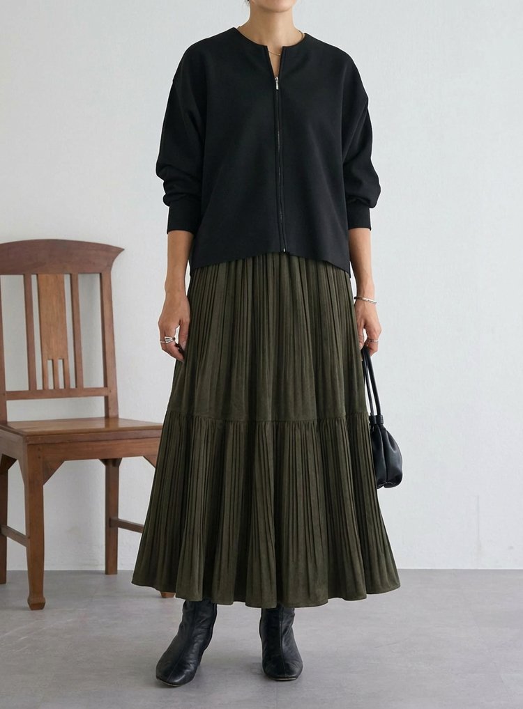 กระโปรงพลีทเอวสูงสำหรับฤดูใบไม้ร่วงและฤดูหนาว